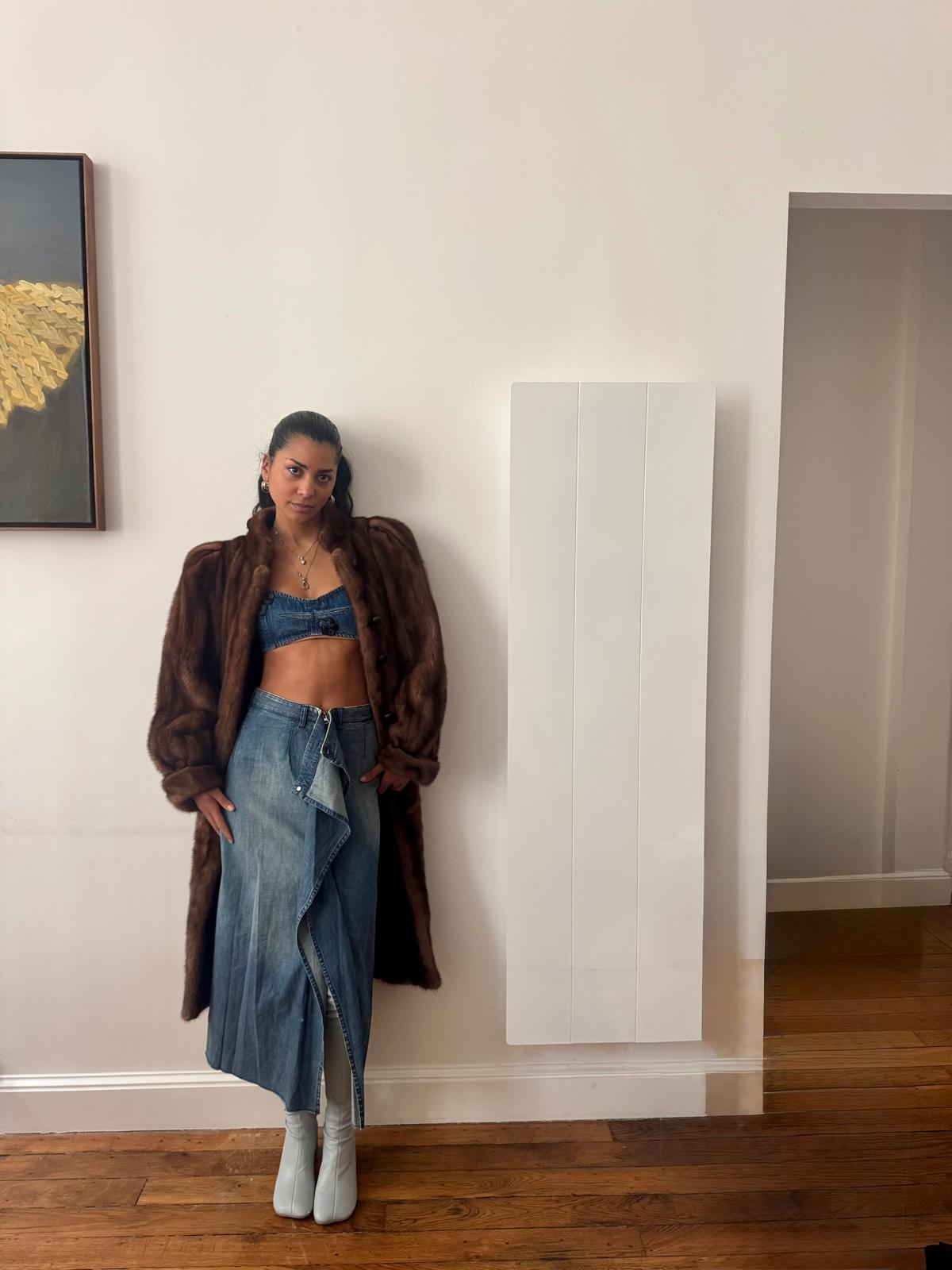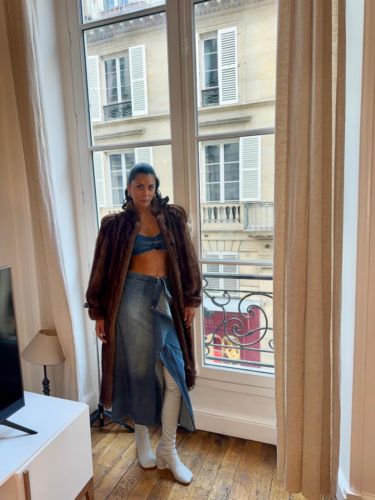 This exceptional Saint Laurent coat embodies the brand's dramatic and luxurious aesthetic with its full-length, statement silhouette. Crafted from rich brown fur (or high-quality faux fur), the piece features a structured yet relaxed oversized fit, ideal for sophisticated layering. The dramatic length and the opulent texture of the material make this a timeless statement outerwear piece, capable of instantly elevating any ensemble, from denim to evening wear.